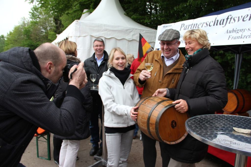 Gern präsentiert der Partnerschaftsverein Vlotho – Aubigny seine Aktivitäten öffentlich. Was würde sich dazu besser eignen als gemeinsame Feste? Ob früher beim Stadtfest Vlotho oder in jüngerer Zeit bei der Uffelner Meile oder beim Hafenfest: Bei einem guten Tropfen am Getränkestand des Partnerschaftsvereins kommt man leicht ins Gespräch.
