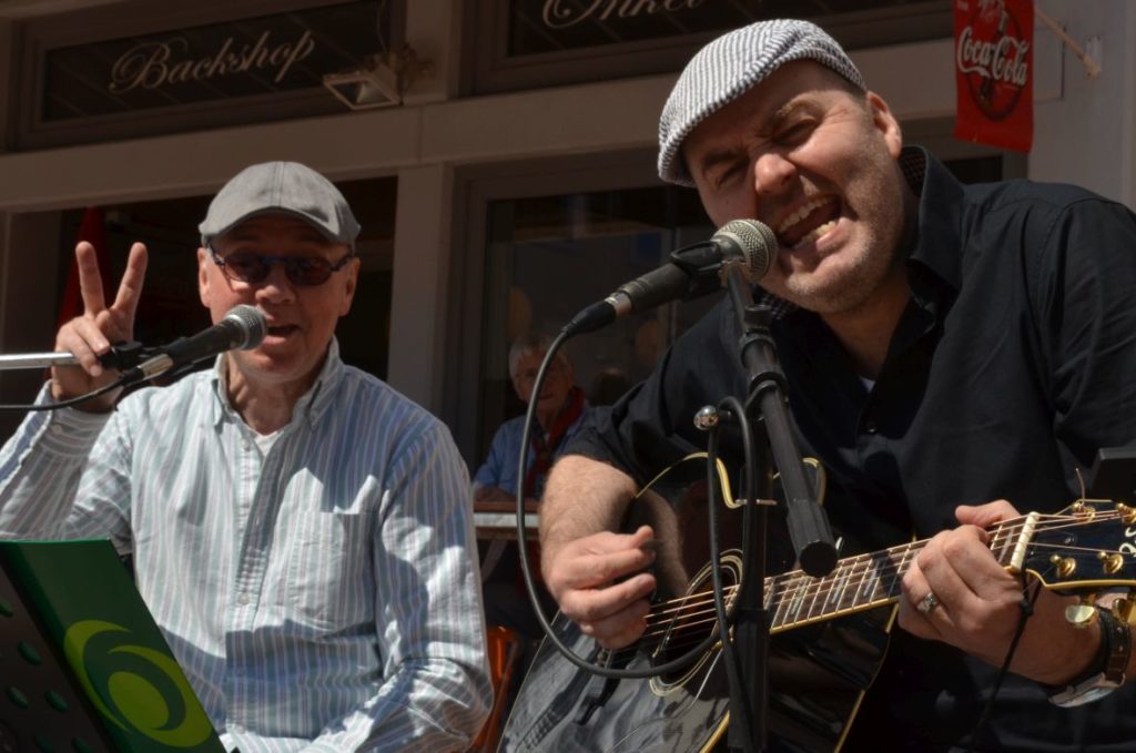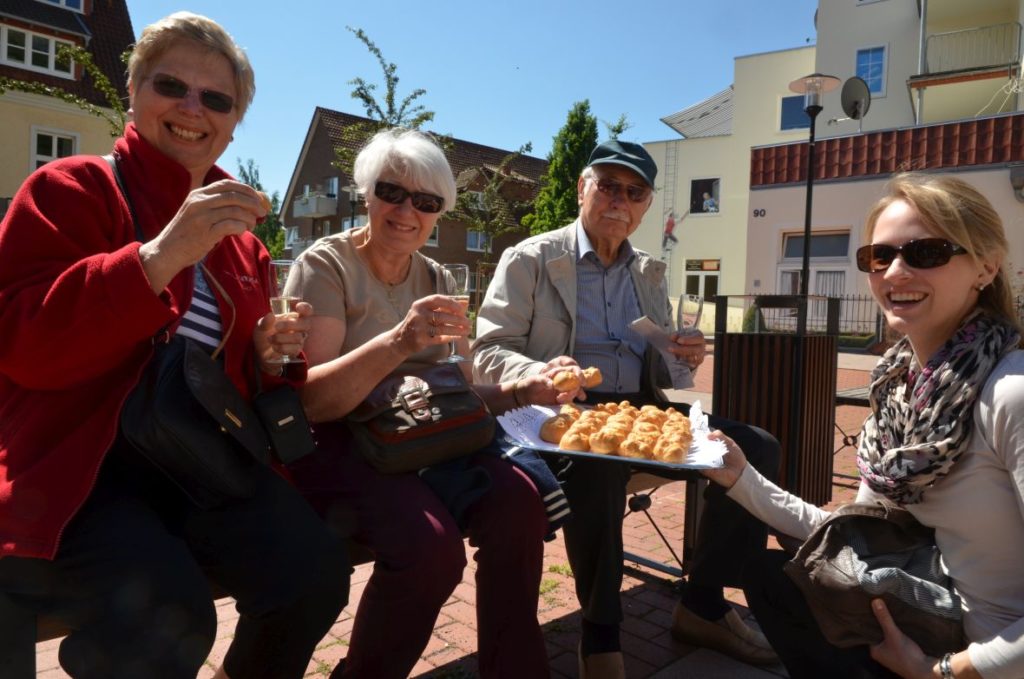 Eine sonnige Angelegenheit war der Besuch der Albinienser Freundinnen und Freunde zum 25-jährigen Bestehen der Partnerschaft im Jahr 2014. Ein Höhepunkt war neben dem Festakt im Weser-Gymnasium sicherlich der Frühschoppen auf dem Sommerfelder Platz mit Musik von Achim Patz und Oliver Plöger.